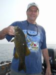 This past week was a week I look forward to every year.  Patrick and Jeff from the Chicago area and Patrick's Uncle Charlie from Pittsburgh came up to once again spend a week fishing Big and Little Bay de Noc.  I've fished with these guys for several years now, and we've been fortunate to have some really good days on the water.  We fish a lot for pike, bass, and occasionally even walleyes!  This years fishing was a little tough to say the least.  We got some really nice quality fish, but the overall numbers were way down from what we are used to.  The bass bite was much tougher and the unusually warm water temps have kept the really big pike from coming back into the weedbeds like we're accustomed to.  We caught some fish, and a few good ones, but the numbers were definitely down.  The one day we did concentrate mostly on walleyes we did quite well...bringing back 14.  That was last Monday, and we caught them doing a variety of things.  We caught a few jigging, caught a few trolling harnesses and caught a bunch drifting the outer bay just south of Gladstone along the east side.  Best baits for the bass were tubes in chartreuse, brown, and goby colors.  Drop-shotting was good using a variety of baits from Jackall I-Shads, Berkley gulp twitchtail minnows, and 3 inch Berkley gulp minnows.  Green pumpkin was a great color last week.  I also caught a few good smallies on paddletail swimbaits.  The 4.8 inch Keitech swimbaits were something I hadn't used before...but the fish ate em up!  The pike like em' too...so if you throw em' you better have a few extra swimbait jigs along.  We used 1/4 and 1/2 ounce jigheads with the swimbaits.  After thousands of casts and lots of sun and wind it feels good to have a couple days off the water.  Here's some pictures of this past weeks fishing.  The pike and bass fishing will only get better as the water cools off some, good luck from all of us in the Bay de Noc area.