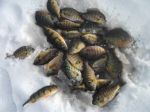 Had the chance to finally get out on the ice yesterday. My buddy Ray and I both had the day off, so we headed north to find some ice, and hopefully some panfish. We started out up by Gwinn on Shag Lake, but ice conditions kept us from reaching our spot. We did punch some holes and fish for a while, only catching some small pike. We then headed to a different lake in the area...called Lake X. Here we found some more ice (4-6 inches), and with more ice came more people. Most of them were fishing pike with tip-ups and doing quite well. They had flags continually for the whole time we were there. This was the first time either of us had fished the lake, and we were very happy with the results. We both caught a nice mess of beautiful bluegills, sunfish, perch, and crappie. All of my fish came using a size 14 or size 16 J&K Tackle tungsten jig in orange or firetiger , both colors were great. We were tipping them with red and white spikes. We carry both colors at the shop, and they come 50/ $2.00. You can also buy them by the dozen @ .75 cents / doz. Kept at 34 degrees they last a long time. Tomorrow (Friday) we will have our full selection of bait including perch minnows, walleye minnows, wax worms, etc.. Ice conditions on Little Bay de Noc continue to be spotty, with most of our customers only reporting 2-3 inches of ice in most spots. Be very careful if venturing out on the ice anywhere right now. After this next weeks cold we should be good to go, so maybe patience is best right now...even though we all want to get out there!