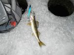 Well...my buddy Ray and I decided to head out on Little Bay today. We stayed north of "the narrows" at Gladstone and fished in 38 fow. We had a good six inches of ice where we were at. With the water dirty like it is, many times the daytime bite is the best, so we headed out earlier than we normally would and fished from about 11 a.m. until 5 p.m.. Shortly after getting set up we had fish coming through, but most of them were shorties. We both caught several undersized fish, most in the 10 inch range. At 1 p.m. I lost my first keeper and then dropped right back down and landed a nice 20 incher. Neither one of us could get a bite on anything other than a #9 jigging Rapala. Even all the small walleyes were caught on #9's. My best color today was parrot and Ray's was glow and also firetiger. I ended up landing 3 keepers and losing 2 while jigging, and I lost one on a tip-up because it was froze up. Guess it's time to put some new lube in my polar tip-ups. It was a fun day for the first walleye trip of the year, Good luck from all of us in the Bay de Noc area.