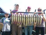A short nights sleep last night and back on the water early this morning. Today we started out trolling over our weeds again with Walleyes Choice (http://www.walleyeschoice.com) harnesses, but this only netted us 2 keepers this morning. When the wind kicked up we headed back to our drifting location from yesterday...and the fish were on fire. We had doubles, and a couple triples, and quickly caught another 13 nice walleyes before our time was up. We ended up with 15 nice walleyes and a pike for Ken Jubar, his son Aaron and his wife Jill and their son Jack. What a fun couple of hours of fishing. Color didn't seem to matter as long as it was orange!!! Ken Jubar is one of our deer hunting guests and this was the first fishing trip we've done, thanks Ken for a great morning on the water...see you in November.