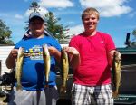 The fishing recently has been just like the weather...up and down. Friday's front that moved through gave us the first major change in weather in a couple of weeks, and with the northeast winds, the fishing was much tougher on Saturday. We only landed 2 keepers on Saturday morning's trip. Sunday, while fishing with the Swanson family from Manton Michigan, we had a little better bite and we were able to get 9 keepers in the boat. Walleyes Choice harnesses in I-62 was by far our best weapon of choice. (http://www.walleyeschoice.com) Today's trip started out really good, we had 4 keepers in our first two passes over the structure we've been fishing and then it was total frustration after that. We went on to lose several nice fish before the bite died and we went casting spinnerbaits for pike. I-62 and I-51 were our best colors today (Monday). Here's a few pictures from the last couple of days on the water. Good luck from all of us in the Bay de Noc area.