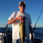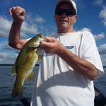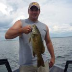 This past week was a week I look forward to every year. The guys I'm blessed to fish with are more friends than clients. Patrick, Jeff and Charlie have been guests of ours for many, many years now, and they're just wonderful people. We always have a great time on and off the water...for a week that seems to go by faster and faster each year. This year was no different, I can't believe it's over already. We had a couple of days with some pretty strong winds...and over the years we've used those days to hit the golf course. This year we had the inaugural "Goby Open", which Charlie and I won convincingly! Our best days of fishing were Monday (when we took advantage of a strong south wind to drift a sharp break-line for 10 nice walleyes), and Friday (when we got into a really good smallmouth bite on Big Bay de Noc). Not only were we catching numbers of bronze-backs, but we had fish up to 19 1/2 inches. I could have taken many more pictures than I did...but the action was too good to put down my pole. I did take pictures of some of the nicer fish. Here's some of this past week's pics...good luck from all of us in the Bay de Noc area.