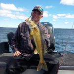 This past week was a week I look forward to every year. The guys I'm blessed to fish with are more friends than clients. Patrick, Jeff and Charlie have been guests of ours for many, many years now, and they're just wonderful people. We always have a great time on and off the water...for a week that seems to go by faster and faster each year. This year was no different, I can't believe it's over already. We had a couple of days with some pretty strong winds...and over the years we've used those days to hit the golf course. This year we had the inaugural "Goby Open", which Charlie and I won convincingly! Our best days of fishing were Monday (when we took advantage of a strong south wind to drift a sharp break-line for 10 nice walleyes), and Friday (when we got into a really good smallmouth bite on Big Bay de Noc). Not only were we catching numbers of bronze-backs, but we had fish up to 19 1/2 inches. I could have taken many more pictures than I did...but the action was too good to put down my pole. I did take pictures of some of the nicer fish. Here's some of this past week's pics...good luck from all of us in the Bay de Noc area.